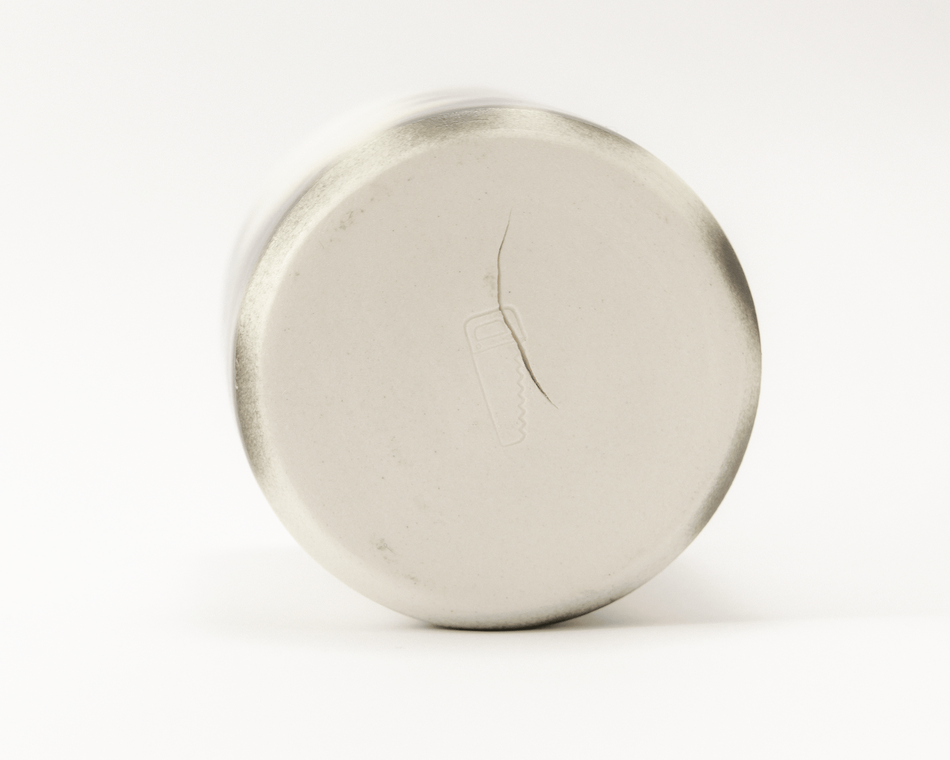 This cup is marked as a "second" due to a surface crack on the bottom. It's still completely water-tight and food-safe.